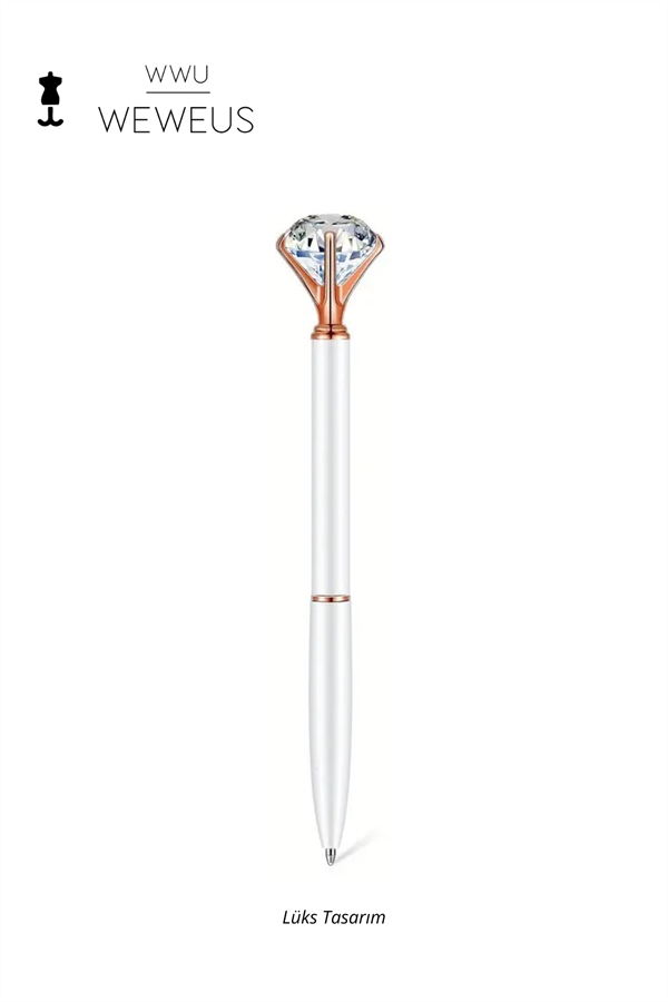 WeWeus Beyaz Rose Detaylı Kristal Şekil Lüks Tükenmez Kalem