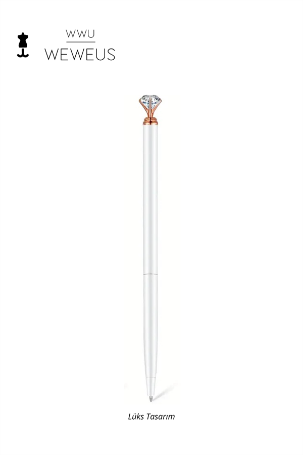 WeWeus Beyaz Rose Detaylı Mini Kristal Şekil Lüks Tükenmez Kalem