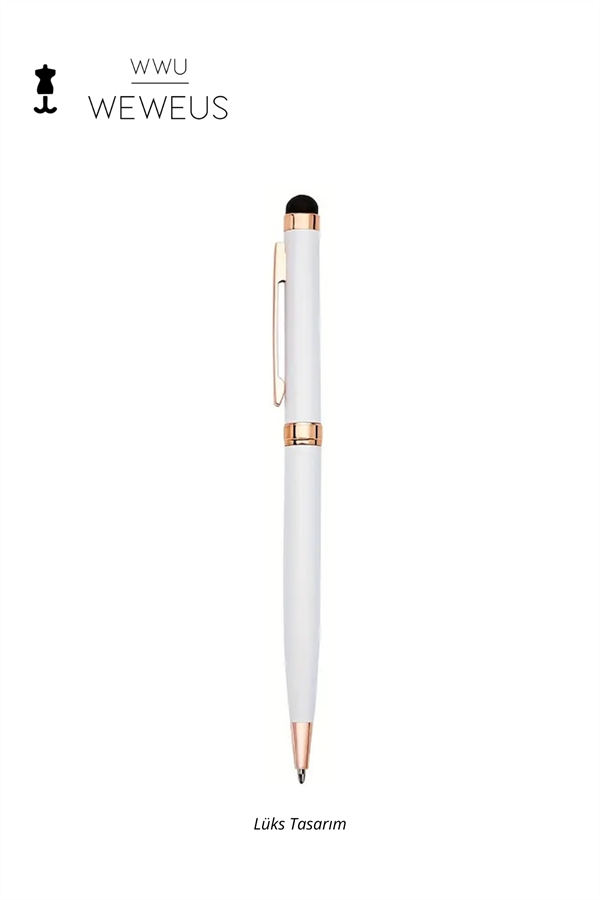 WeWeus Beyaz Rose Detaylı Üst Siyah Lüks Tükenmez Kalem