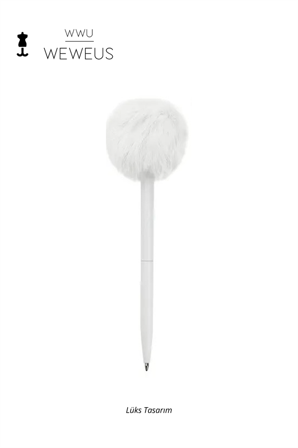 WeWeus Beyaz Rose Tüylü Ponpon Lüks Tükenmez Kalem